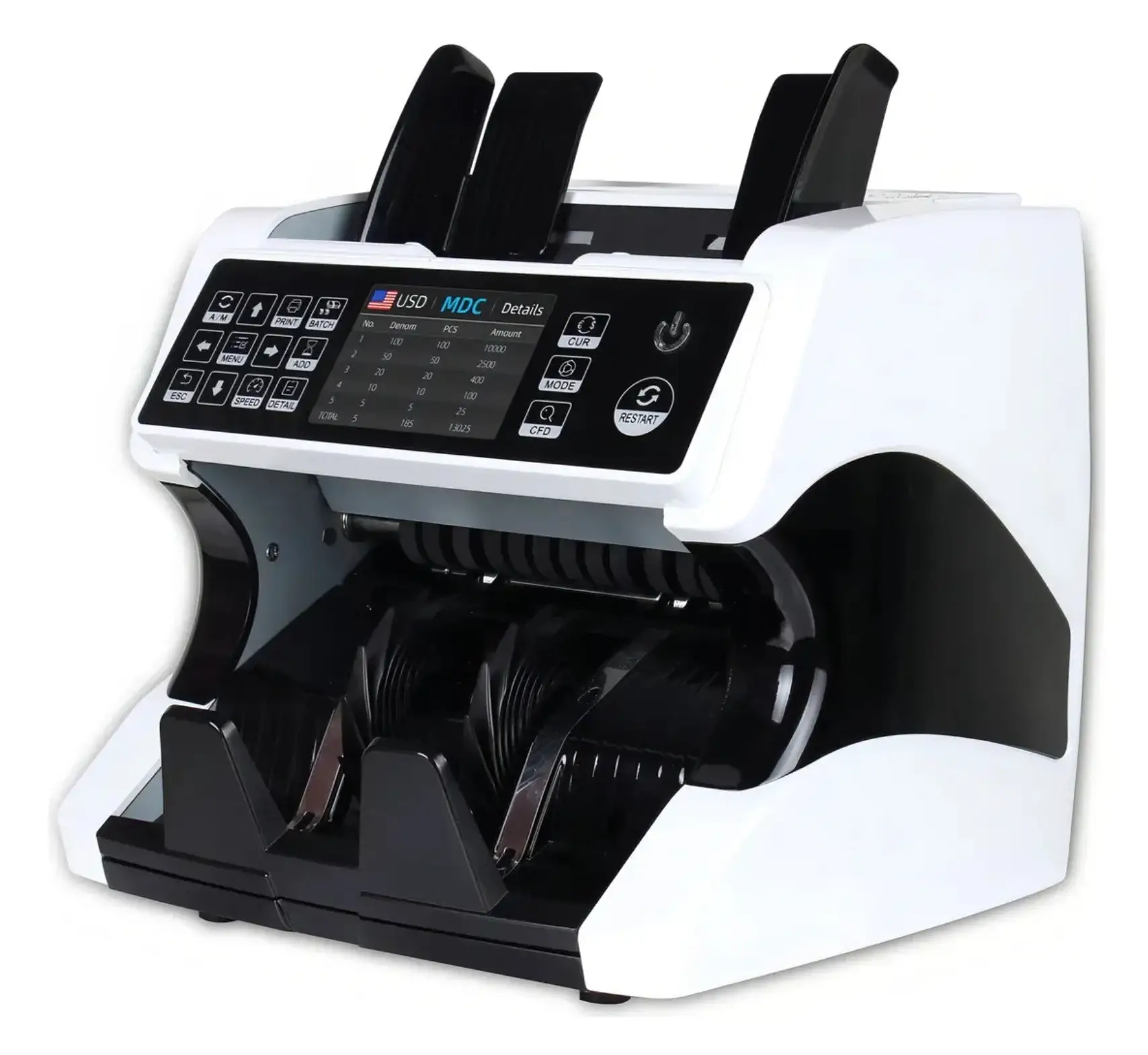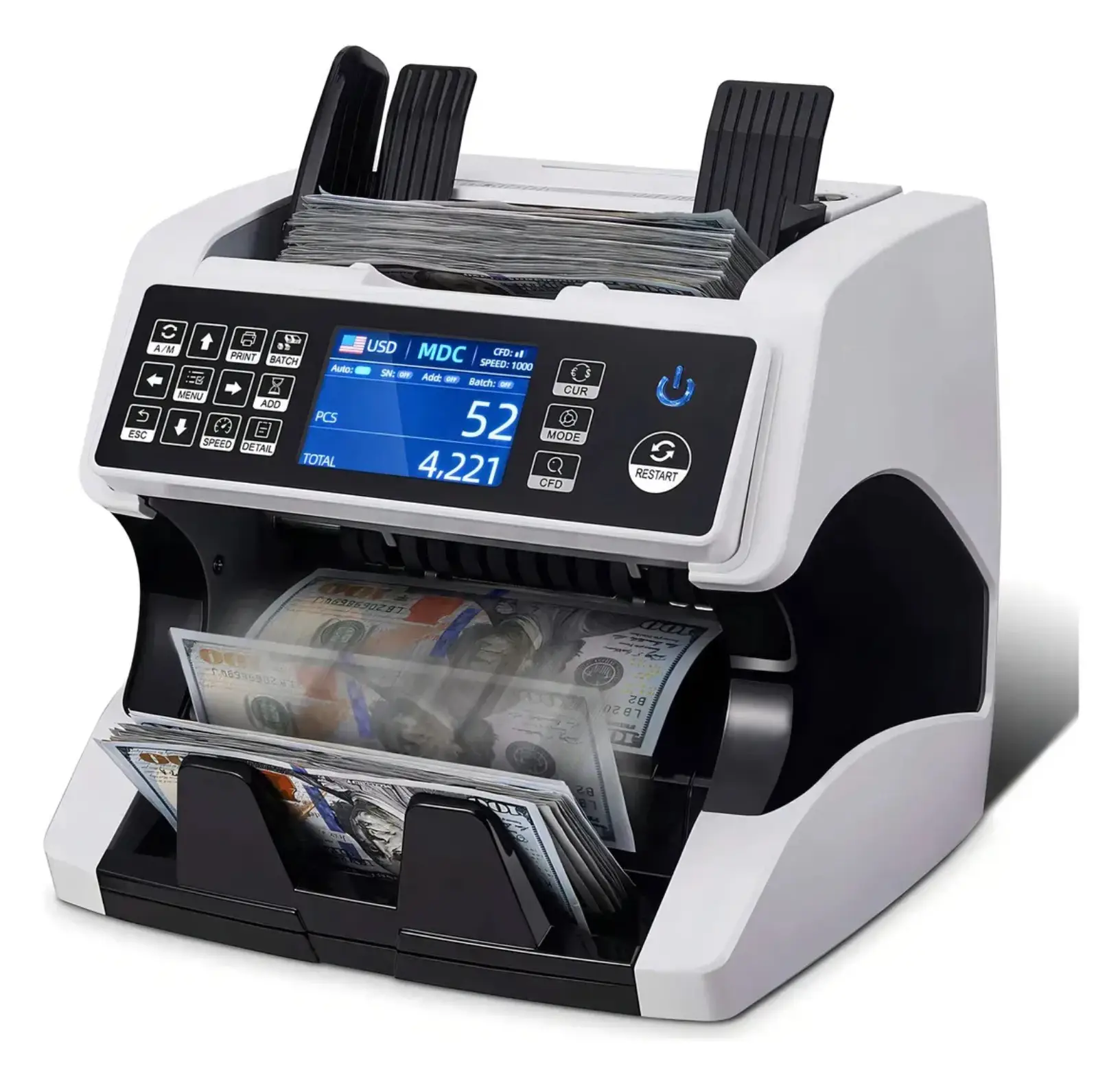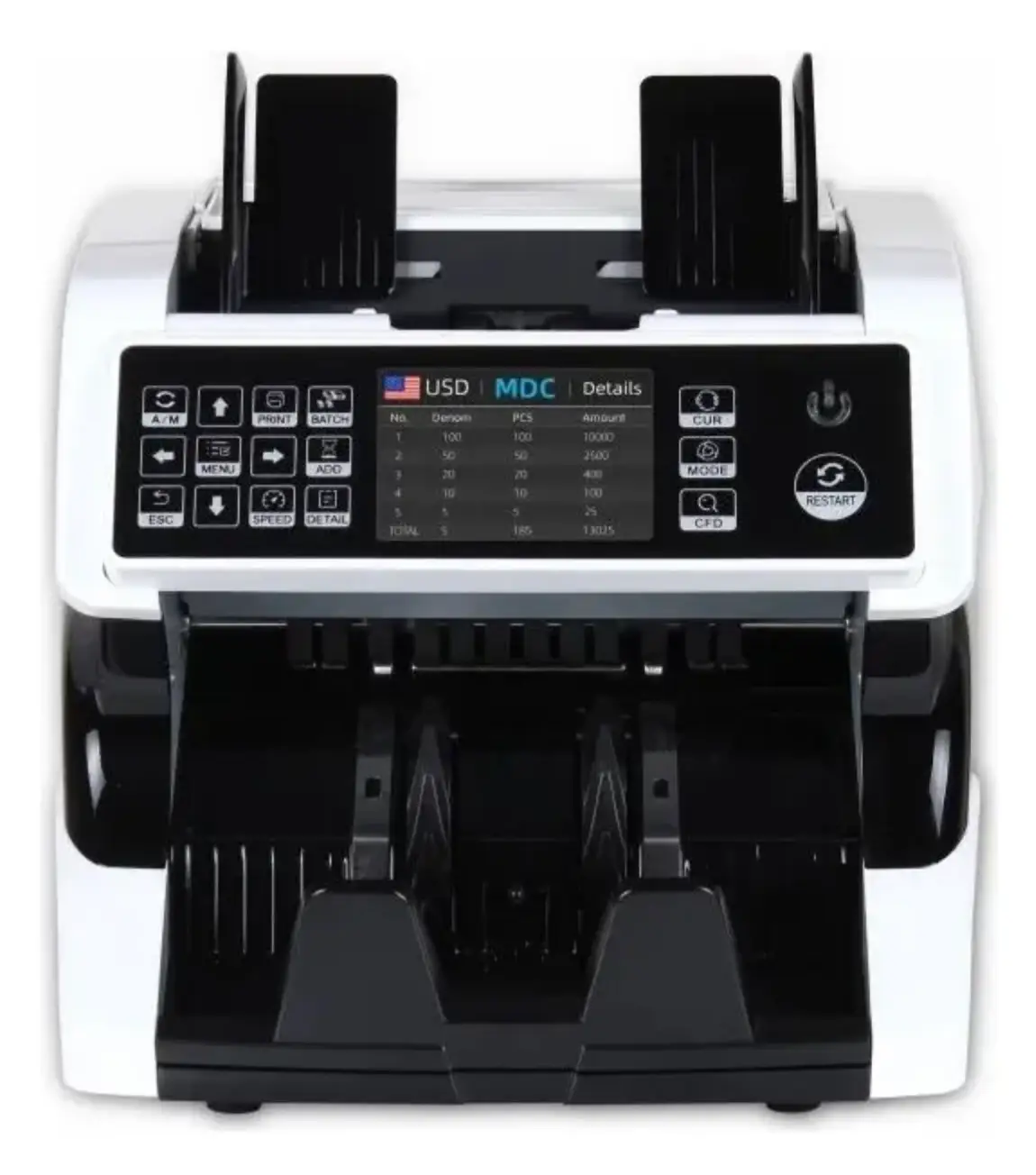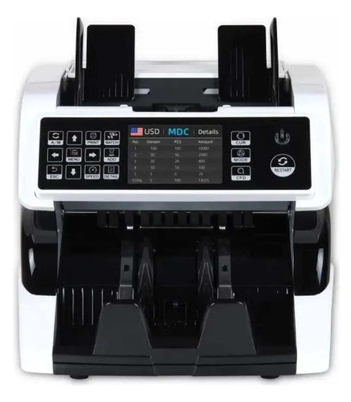 Fácil operación Pantalla frontal color y pantalla auxiliar de conteo Detección Automática de Billetes Falsos o en Mal